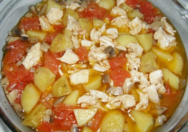 Філе риби, томати, гриби, цибуля, сир, майонез, картопляне пюре